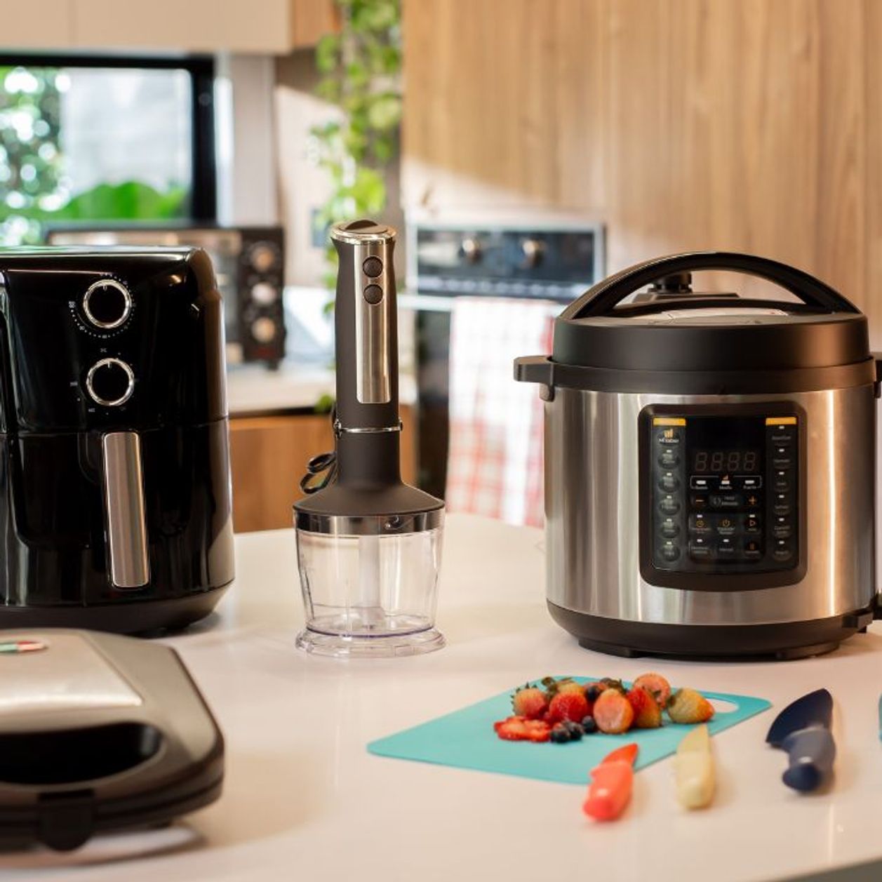 Des appareils pour mijoter, griller ou rôtir complètent l’arsenal culinaire du couple. Leur dernière acquisition combine d'ailleurs toutes ces fonctions, mais le préféré d’Evelyne reste le Ninja 12-en-1. Chez eux, chaque appareil a sa place. Certains robots sont utilisés tous les jours, d’autres sont soigneusement rangés sous housse dans une pièce dédiée, et quelques-uns les accompagnent même lors de leurs voyages ou escapades, toujours prêts à rendre la cuisine plus pratique et agréable.